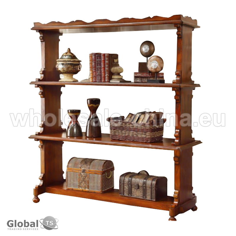 Storage rack for living room which is made of solid oak wood. Great desing in antique style will provide for your room a special atmosphere. It is convenient in use, because you may keep here different things in it. It consists of 3 parts. Sizes: 2-Layer shelf: 600*400*888 mm; 3-Layer shelf: 600*400*1394 mm; 4-Layer shelf: 600*400*1900 mm.