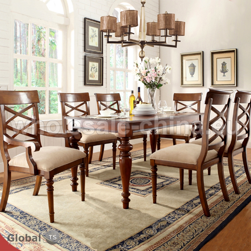 European design wooden dining set which consists of 6 chairs, one table and one sideboard. A rich palette of colors of wood and upholstery fabrics will help you to choose your individual set suitable exclusively for your interior. Fully handmade carving and only eco - friendly materials are used in its manufacturing.
