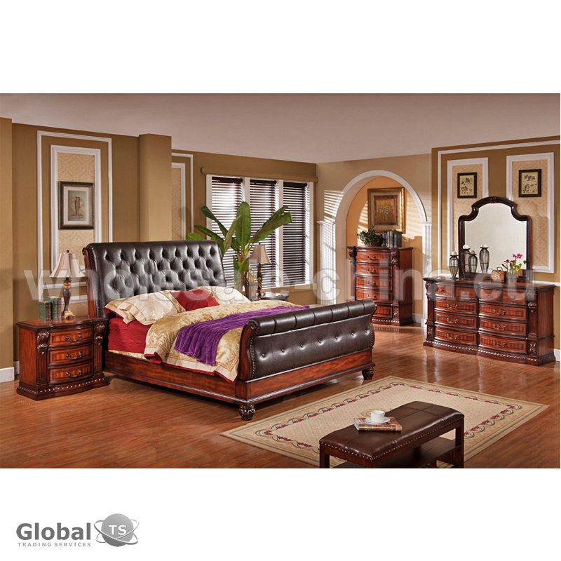Dress your bedroom in classic style with this beautiful bedroom set. This bedroom furniture is crafted of quality materials and solid woods to ensure years of function and beauty. We offer you a luxurious bedroom set which includes: bed, nightstand, drssing table with mirror. You absolutely will love this set.