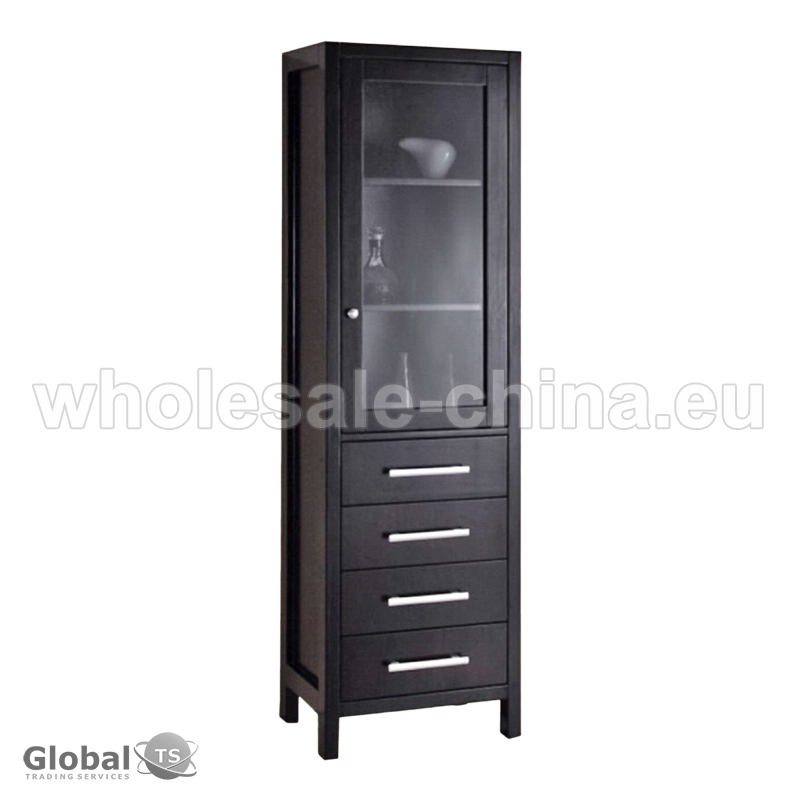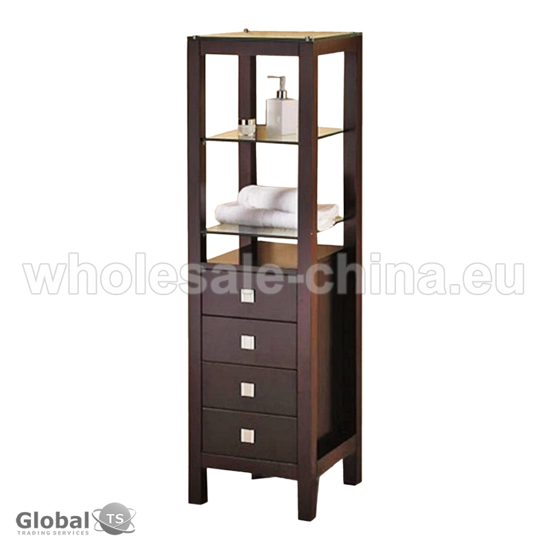 Crafted from wood, the simple and clean lines are appropriate for most homes. This dark brown storage cabinet has a simple design to fit into any interior design theme. It also features a built-in drawer that will accommodate everything from cosmetics to bath towels. Glass shelves provide additional space for storing all needed items.