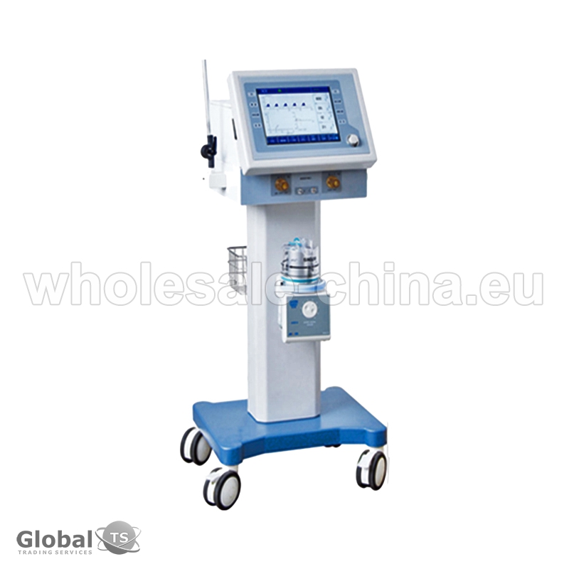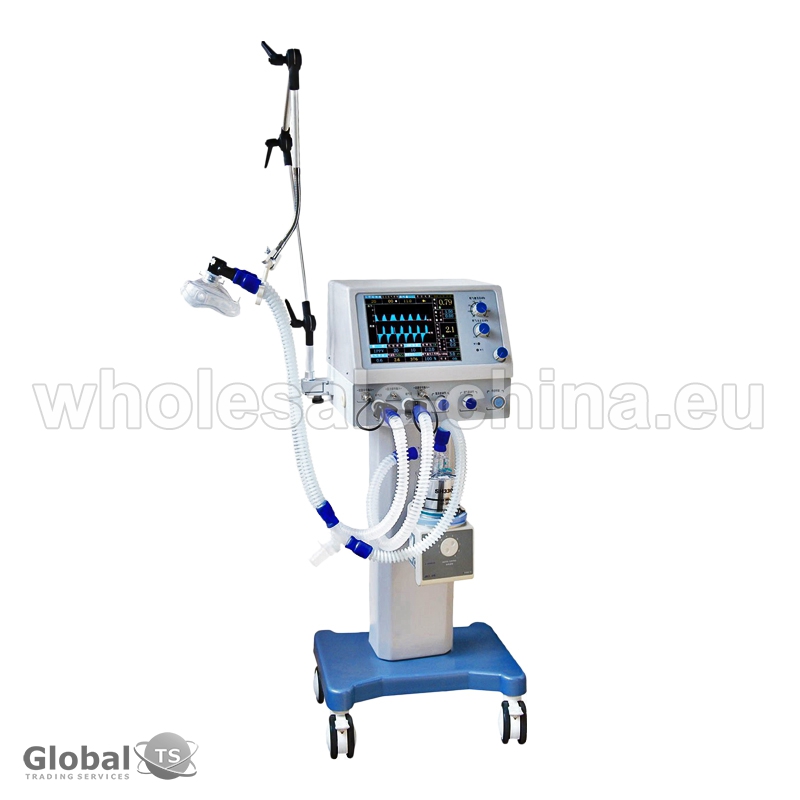 High quality medical ventilator machine. It is gas driven by medical compressed oxygen and compressed air. In the aspiratory phase, two streams of compressed gas (compressed oxygen and compressed air) flow into a high performance air-oxygen mixer to form a mix of oxygen and air with a certain pressure. Other specifications: