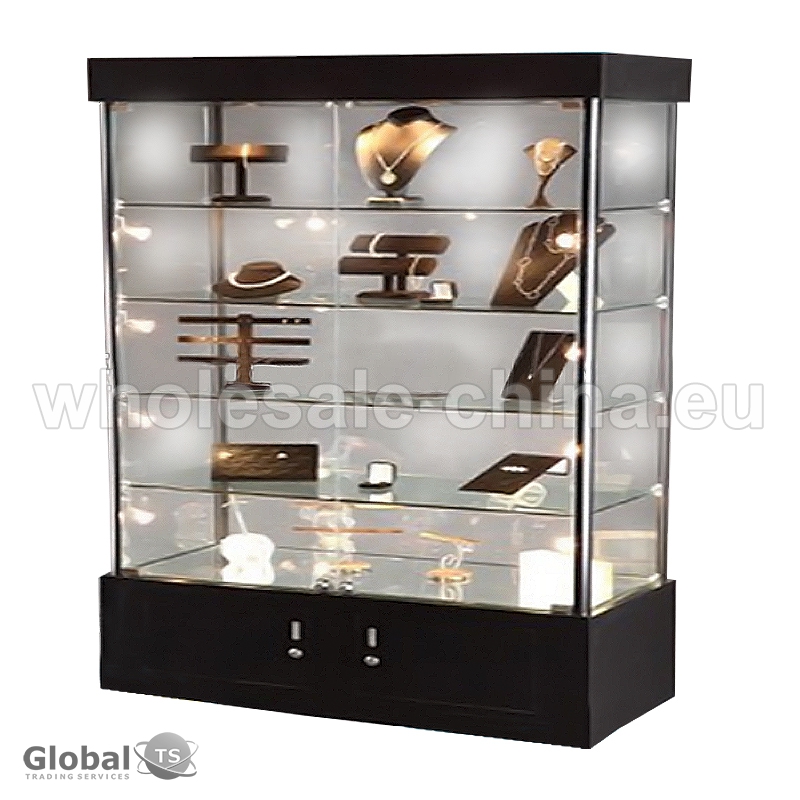 We offer you convenient showcase for jewelry. Customization is available, so it can pass for your store ideally. It can be made of MDF with baked paint, acrylic, wood veneers, clear tempered glass, LED lighting fixtures. Warranty is 3 years.