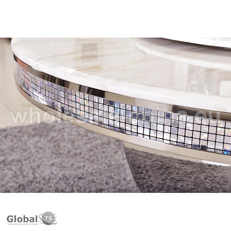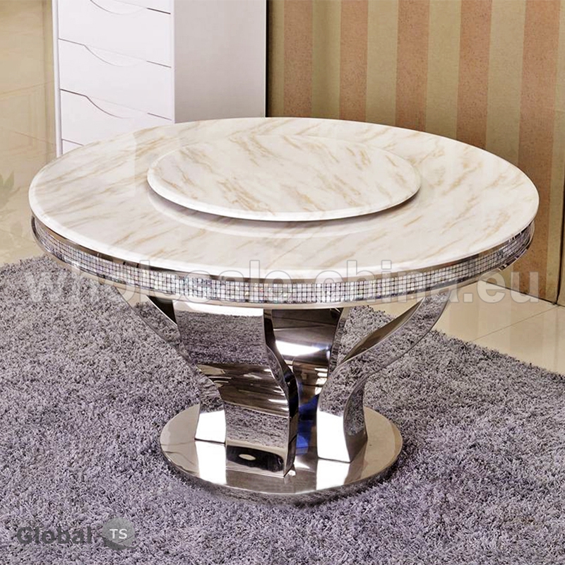 Here is a dining table of round shape. We used marble and stainless steel for producing this table. Stainless steel construction holds marble countertop. You are able to customize colour, size, so we can make table according to your needs.