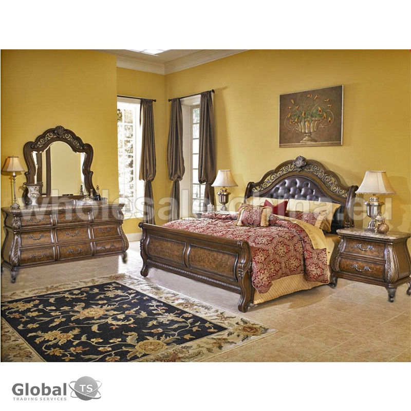 This bedroom set creates a casual elegance for any home. We present you very luxury bedroom set. It includes: dressing table with mirror, bed and nightstand. Attractive and charming bed provides both comfort and relaxation. This bed is tough, strong and durable. Color, material can be changed as requirement.