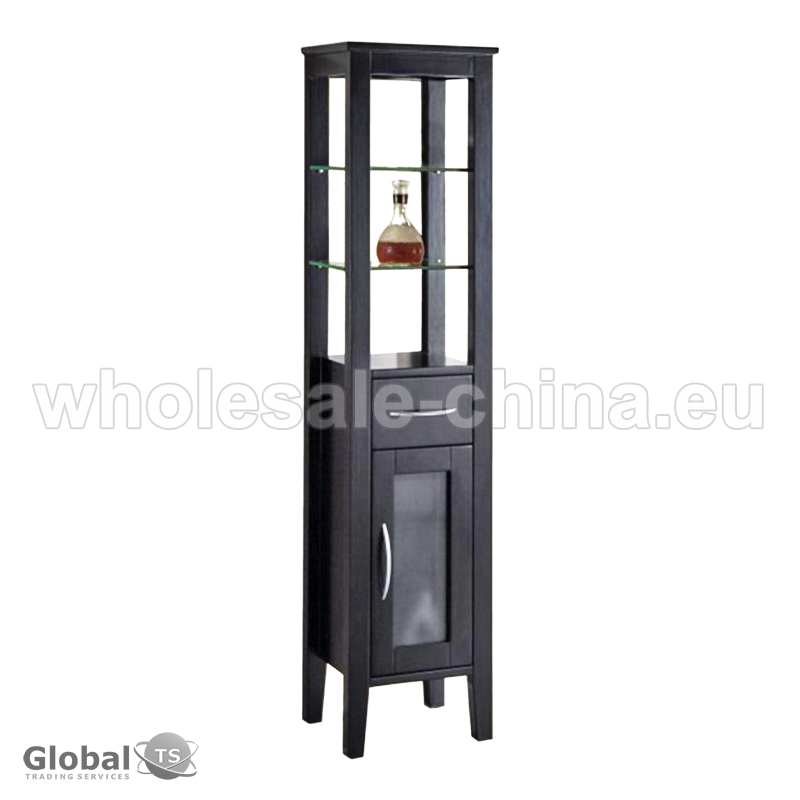 Crafted from wood, the simple and clean lines are appropriate for most homes. This dark brown storage cabinet has a simple design to fit into any interior design theme. It also features a built-in drawer that will accommodate everything from cosmetics to bath towels. Glass shelves provide additional space for storing all needed items.