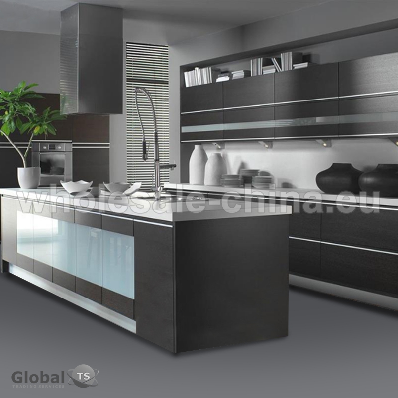 Modern kitchen cabinet for those who like elegance combined with multifunctionality. It has the folllowing specifications: 1) accessories: backsplash, drawer basket, drawer slide, faucet, handle & knob, hinge, sink, toe kick; 2) carcase material: particleboard, MDF, Plywood 3)door material: MDF, solid wood; 4) door panel surface treatment: PVC membrane, paint. Various delicate stylish handles are available.