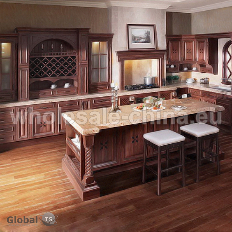 Wooden luxury which is combined in one kitchen cabinet. This kitchen is a standard of elegance, beauty and functionality. Main specifications are the following: 1) countertop - 40 mm marble/quartz/granite;2) carcass: 18mm plywood or particleboard, MDF; 3) edge banding: PVC or aluminium alloy; 4) door panel: 18mm melamine board with MFC finish or particleboard with MFC finish. Various delicate stylish handles are available. Perfect choice at a resonable price.