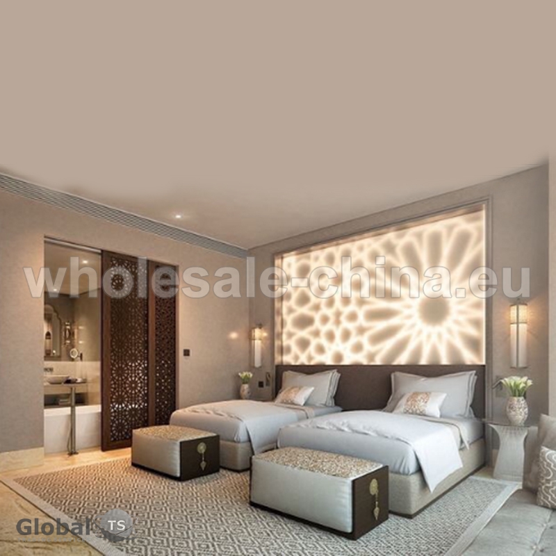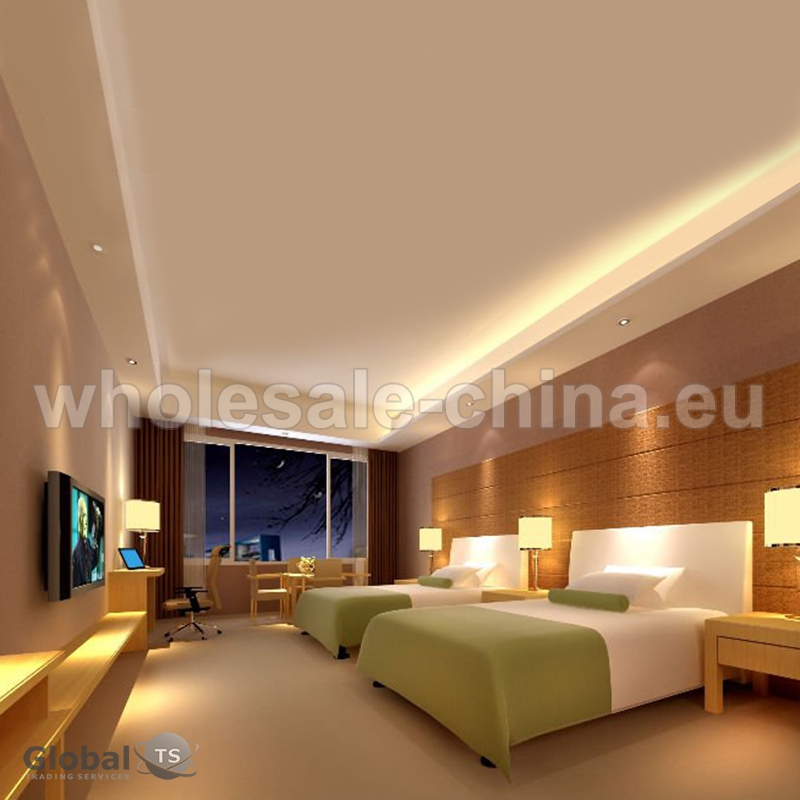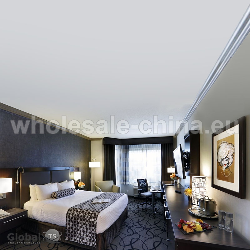 Stylish set for hotel bedroom. This full size bed is in elegant and and made in contemporary style. Enhance your room’s look with the clean lines and upholstered design that is perfectly suit for any bedroom environment. We offer you full customization.