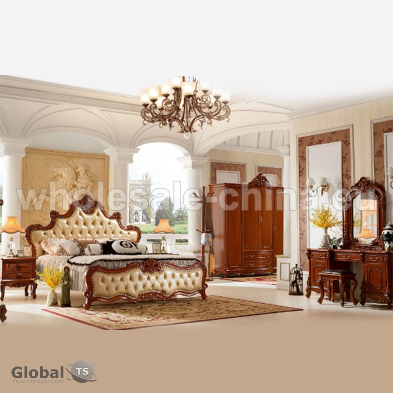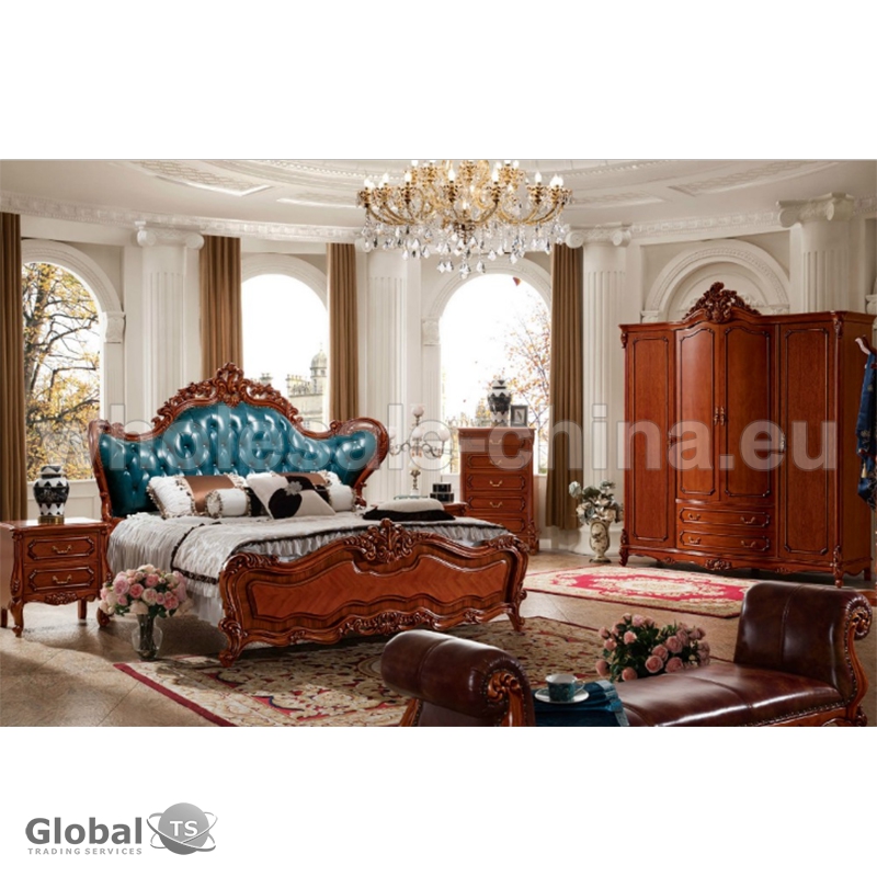 Luxurious bedroom set which is made of high-quality solid wood. It is durable and strong. Its royal look will crate a unique atmosphere in hotel bedroom. Bed, wardrobe and dressing table are ideally match in colours. Let your guests enjoy a good rest.