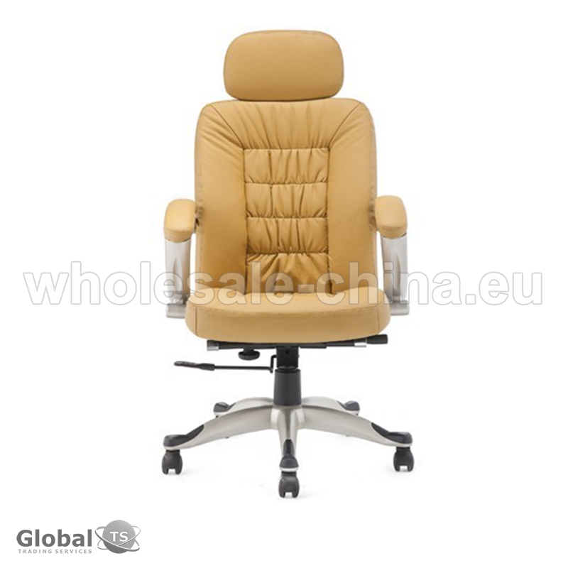 Fashionable and luxurious office chair with comfortable armrests, pad headrest, seat and backrest. Absolutely stylish and practical model, which will be a wonderful decoration for your office due to the original design and the successful combination of various elements. The upholstery in classic tone is successfully emphasized with chromed framework accents. It has the following characteristics: 1) high density cutting foam back; 2) seat cushion: high density cutting foam covered by PU/leather; 3) powder coating armrests with soft pads; 4) adjustable height; 5) powder coating base. It rotates any side; comfortable backrest with pad headrest helps to feel relaxed during the whole working day.