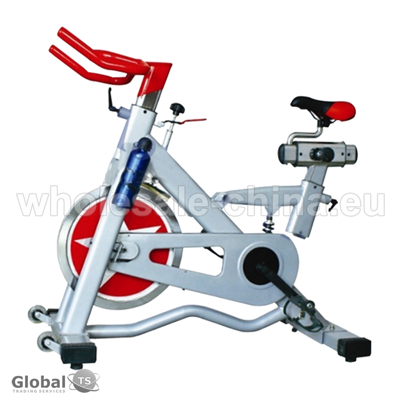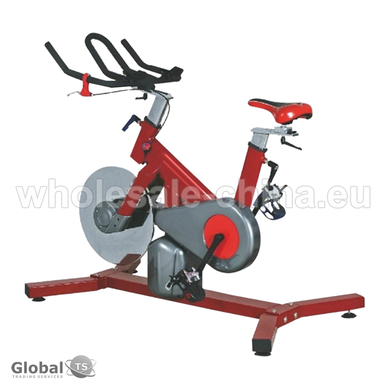 Professional spinning bike of red and gray colors will be a good addition to your sport gym. Nice combination of colors will match to any design of fitness club or sport gym. It has the following specifications: 1)size: 124*67*106 cm; 2) max user weight: 120KG; 3) resistance: tension control. Warranty - 1 year.