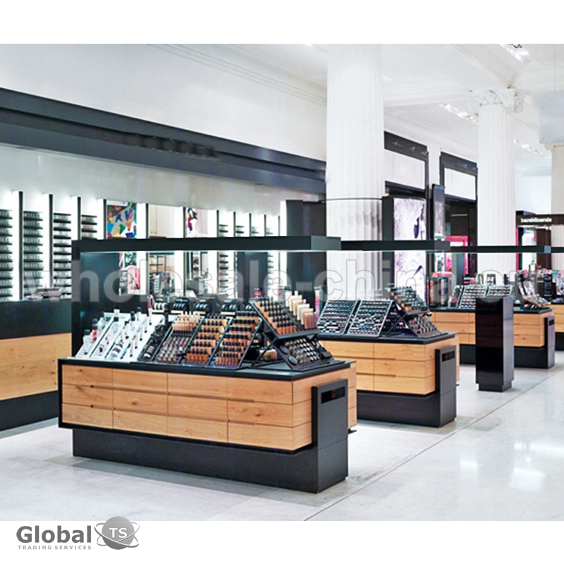 Stylish and practical in use cosmetic showcase. It contains 4 spacious shelves which are divided into several parts for better displaying of different kinds of cosmetic products. Classical combination of colors gives an ideal interior design of any brand cosmetic shops. We provide all necessary design items for its decoration: appropriate size, color, logo or lightning. Only high quality products are used in its production. Warranty – 3 years.