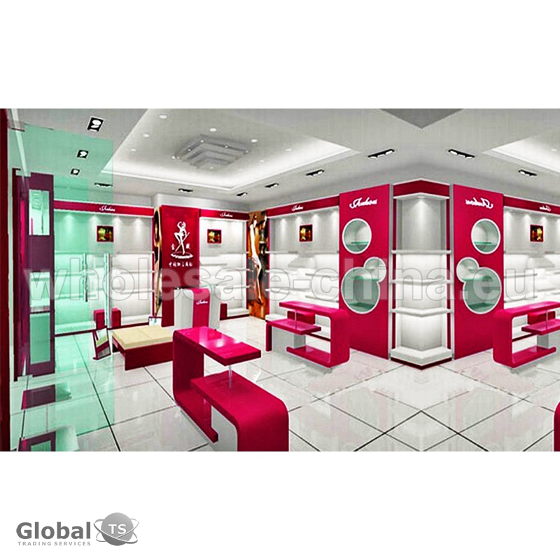 Shoe display racks of white and pink colors. Modern and stylish design. Usage: shoes and bags display. Such display rack will be professional decoration for shop interior design. Size, color, material, logo of shoe store display racks can be customized according to buyer’s requirement. The prices are reasonable. The quality of all products is high.